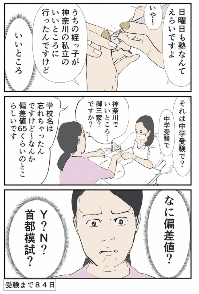 中学受験までの日数があって、直前になれば、それなりに達観できるのがよく描かれていました。中受経験親なら「そうそう」ってなるし、これからの親なら「そうなるんだねー」ってわかっていくので、中受親向けの実感がよくわかるコミックだと思います。