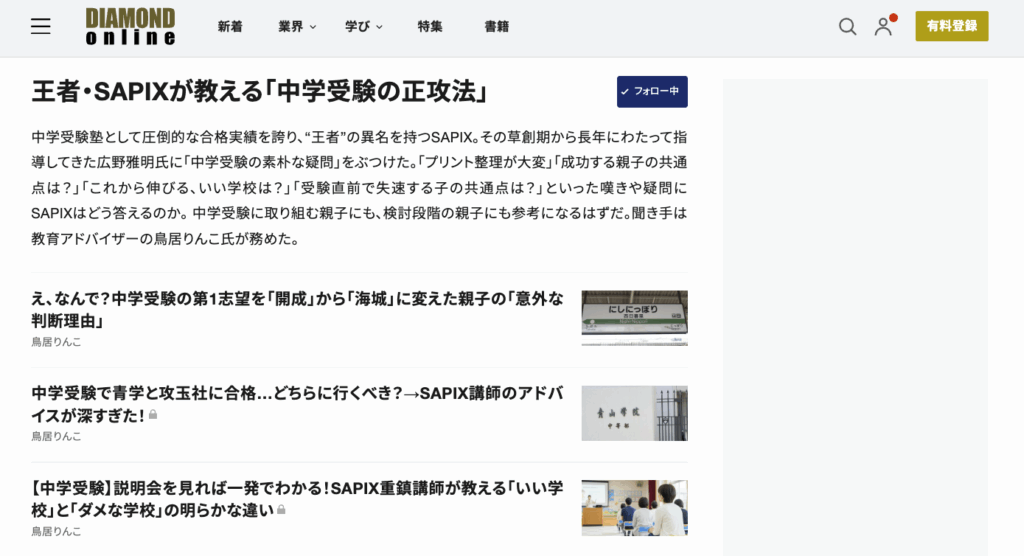 併願校選びの考え方には、「ダイヤモンドオンライン」の王者・SAPIXが教える「中学受験の正攻法」がけっこう参考になります。